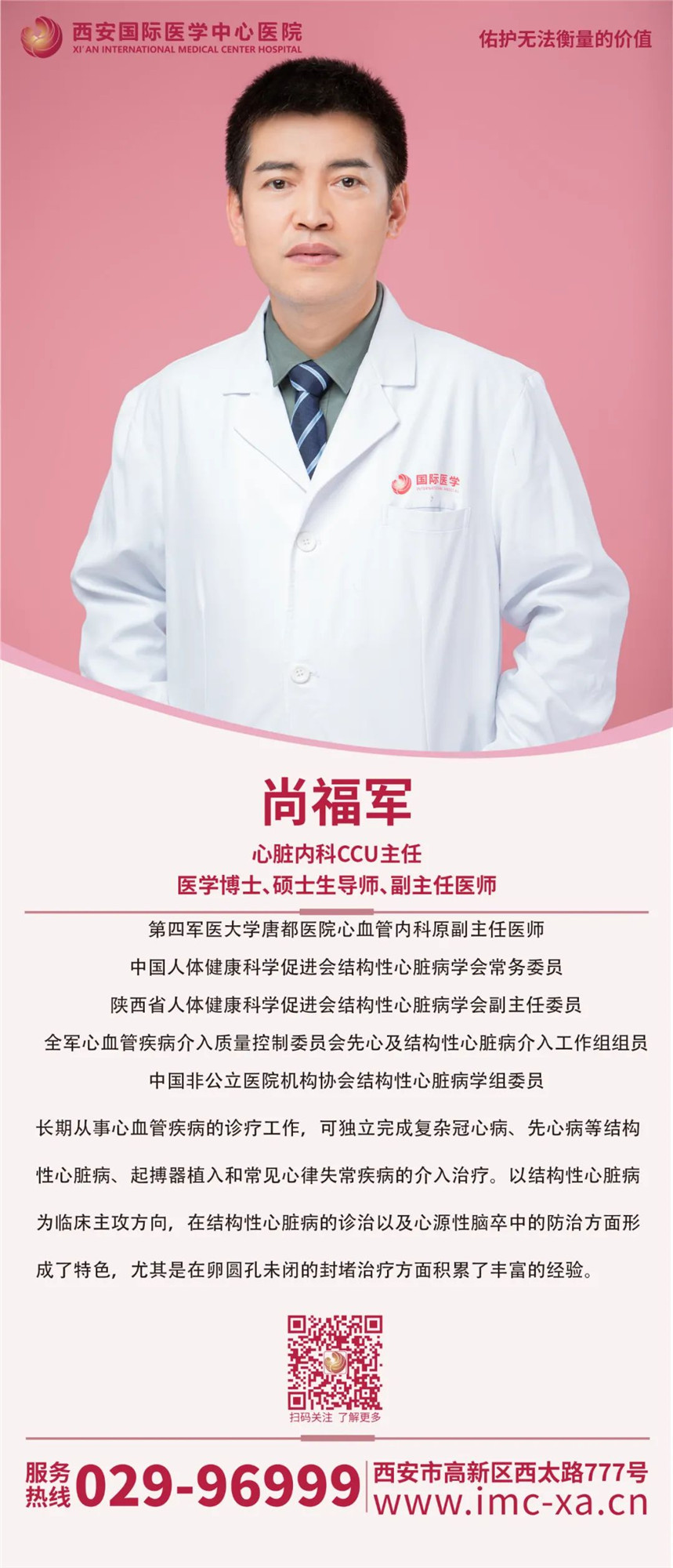 尚福軍在唐都醫(yī)院心內科工作,一干就是十幾年,長期從事心血管疾病的診療工作,可獨立完成復雜冠心病、先心病等結構性心臟病、起搏器植入和常見心律失常疾病的介入治療。以結構性心臟病為臨床主攻方向,在結構性心臟病的診治以及心源性腦卒中的防治方面形成了特色,尤其是在卵圓孔未閉的封堵治療方面積累了豐富的經驗。