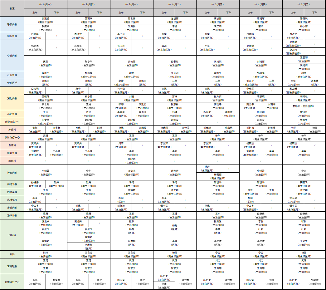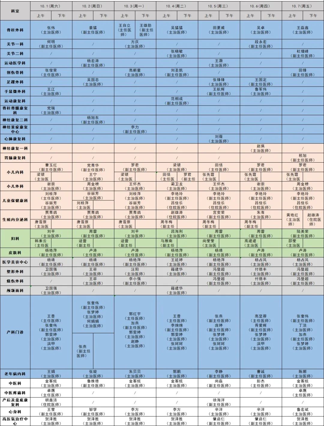 西安國(guó)際醫(yī)學(xué)中心醫(yī)院北院區(qū)門(mén)診出診表