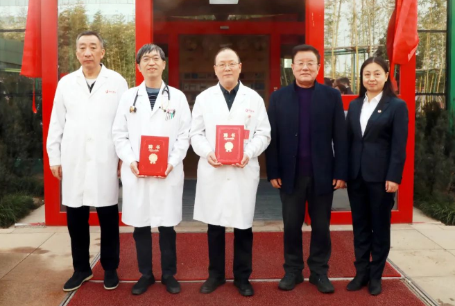 王志峰總經(jīng)理為特需門診的專家代表----胸科醫(yī)院朱運(yùn)奎副院長(zhǎng)和內(nèi)分泌代謝病醫(yī)院姬秋和院長(zhǎng)頒發(fā)聘書。
