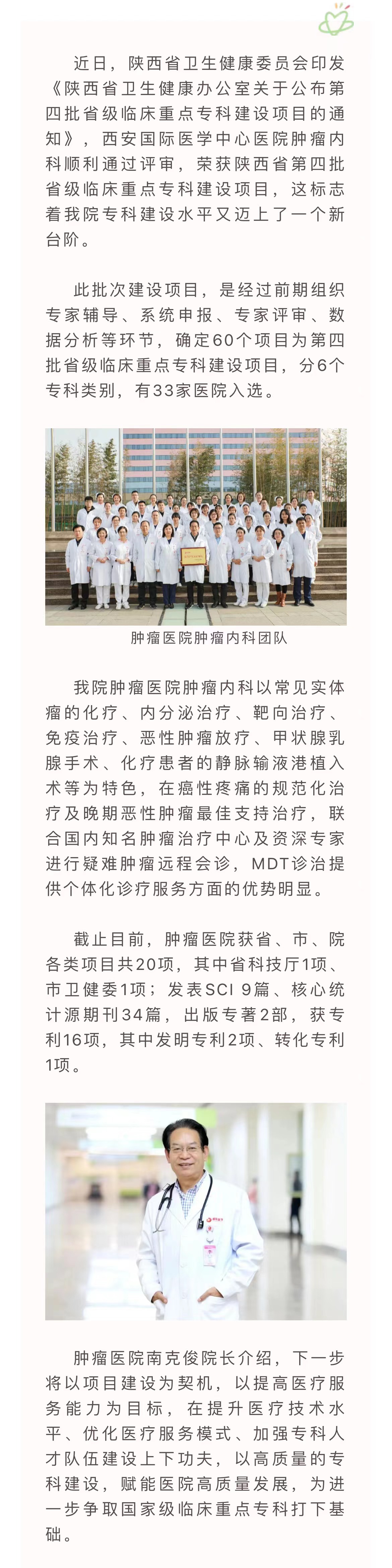 我院腫瘤內(nèi)科榮獲陜西省第四批省級臨床重點??平ㄔO(shè)項目