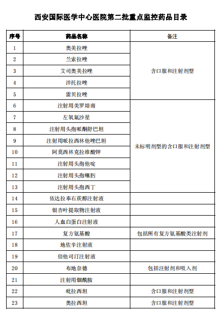 西安國(guó)際醫(yī)學(xué)中心醫(yī)院第二批重點(diǎn)監(jiān)控藥品目錄