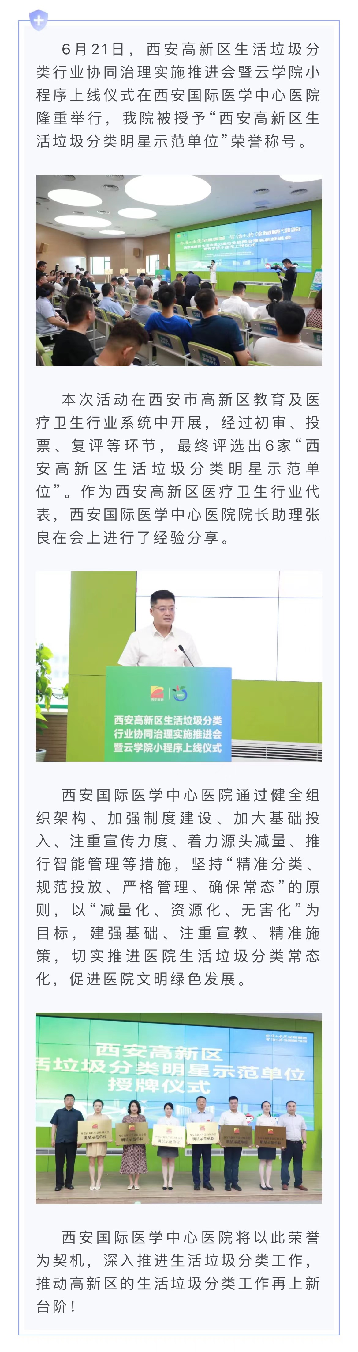 我院被授予“西安高新區(qū)生活垃圾分類明星示范單位”榮譽稱號