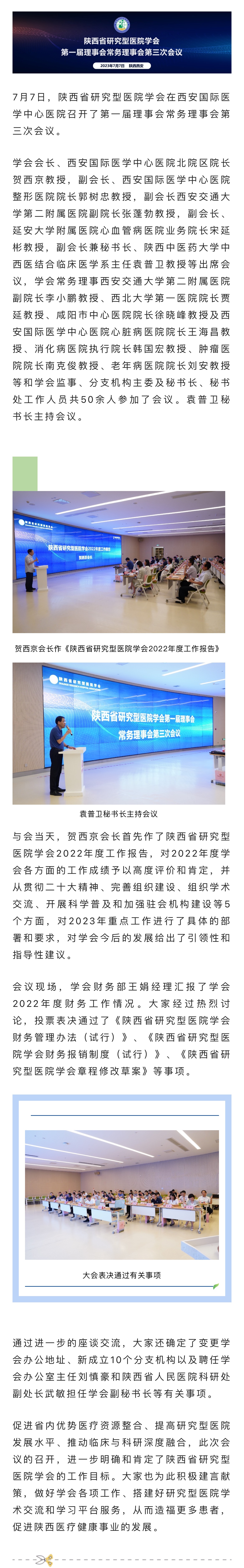 陜西省研究型醫(yī)院學(xué)會第一屆理事會第三次會議在我院召開