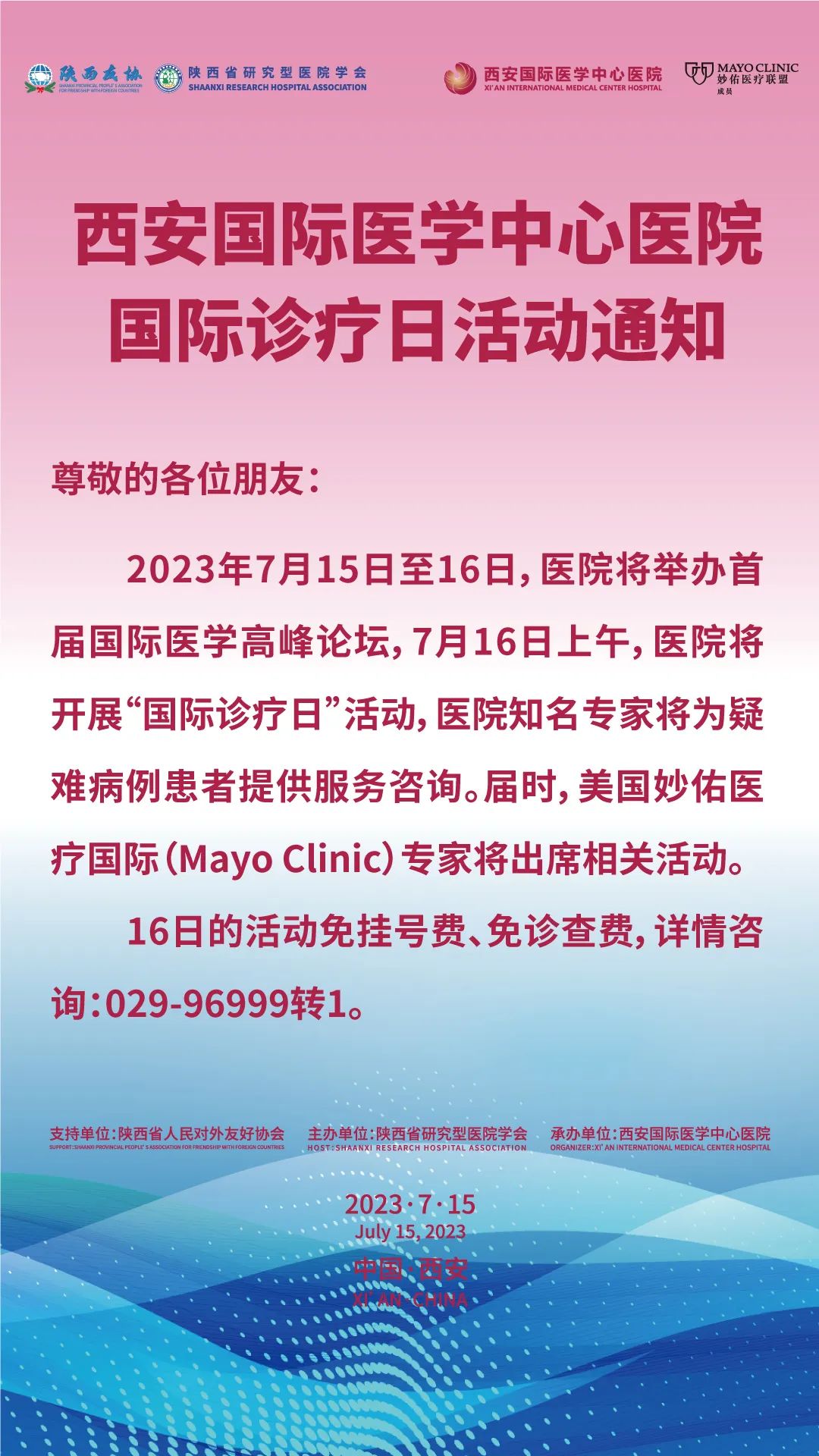 西安國際醫(yī)學(xué)中心醫(yī)院國際診療日活動通知