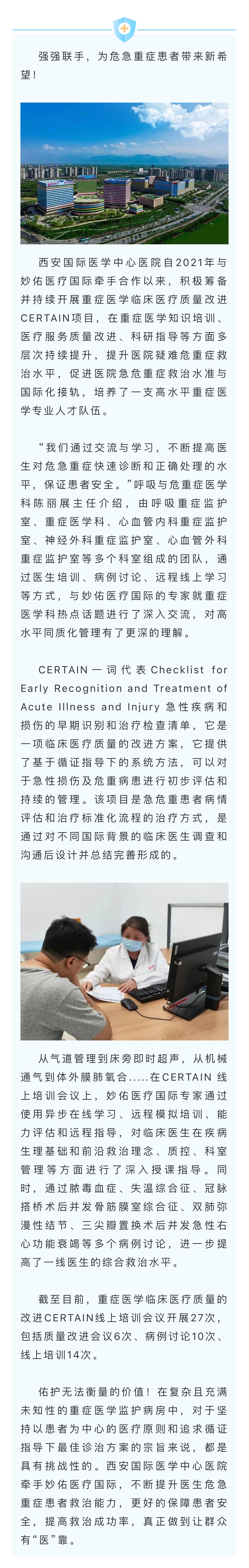 • 國內(nèi)首家高分通過JCI認(rèn)證的醫(yī)院 西安國際醫(yī)學(xué)中心醫(yī)院為國內(nèi)首家高分通過JCI認(rèn)證的醫(yī)院,該稱號由國際醫(yī)療機(jī)構(gòu)認(rèn)證聯(lián)合委員會頒布。