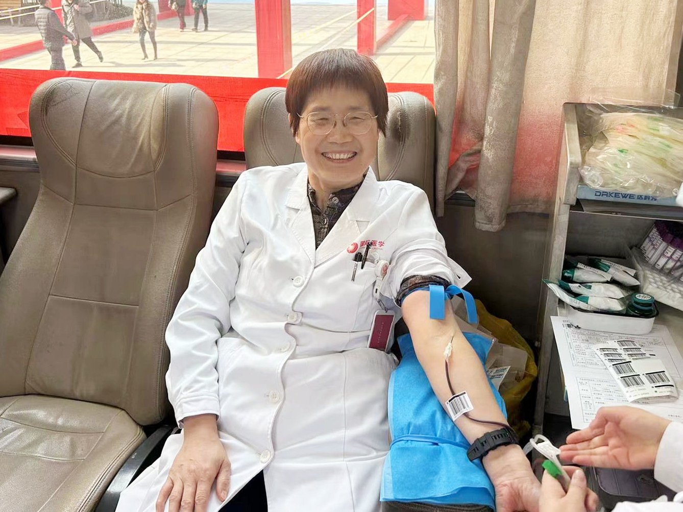 今年的獻血活動,連續(xù)15年獻血、個人獻血量超過6000毫升的腎臟內(nèi)科李占亭主任第一個來到了活動現(xiàn)場,完成登記、體檢。為生命接力,讓愛心傳遞,劉延彤副院長、麻醉手術科王彬榮副主任、運營管理部柴春雨主任、門診部楊博主任、信息中心王暾主任、臨床實驗中心于軍主任、醫(yī)教部劉鑫副主任、內(nèi)分泌科任麗君副主任紛紛參加獻血……