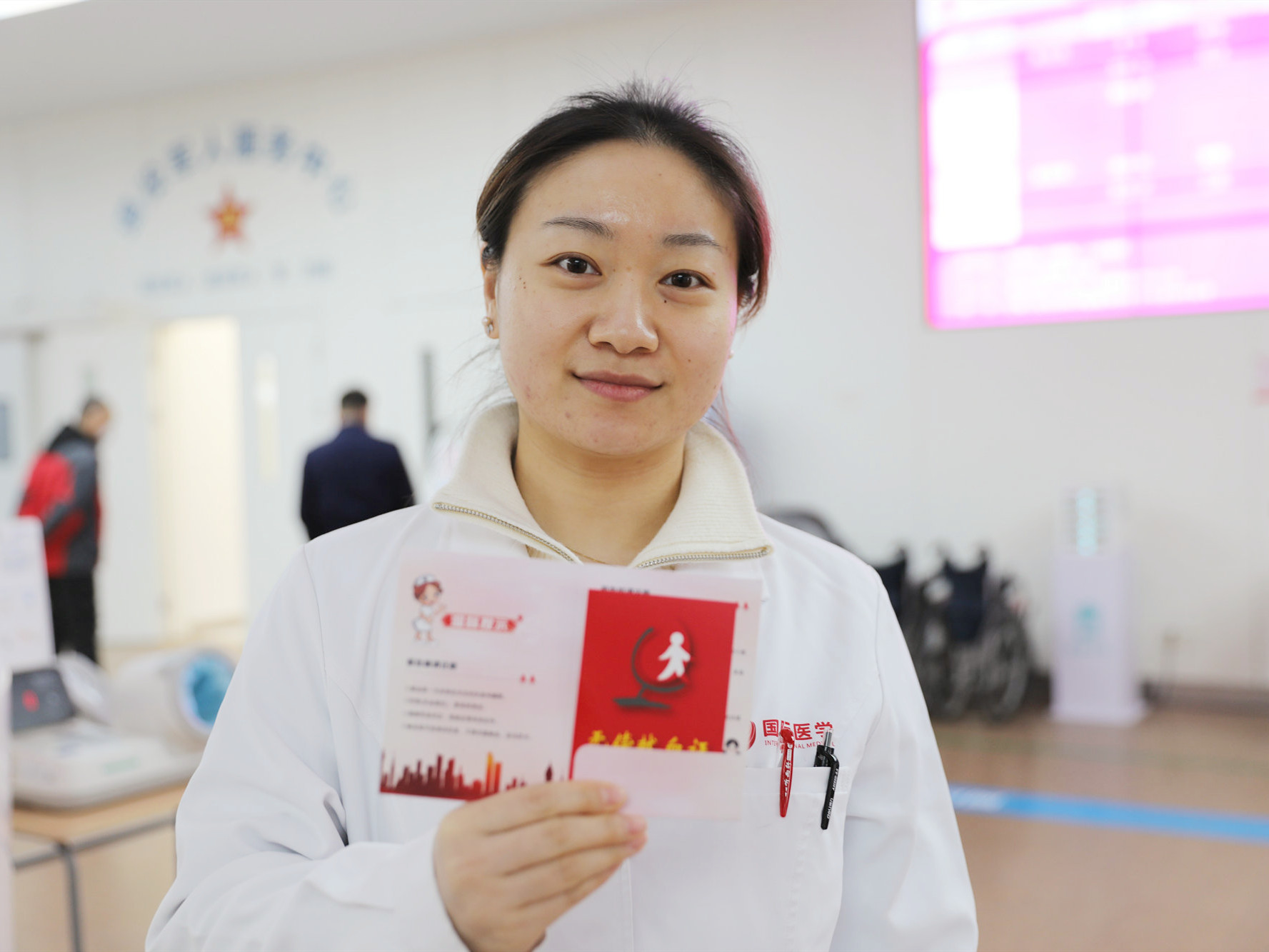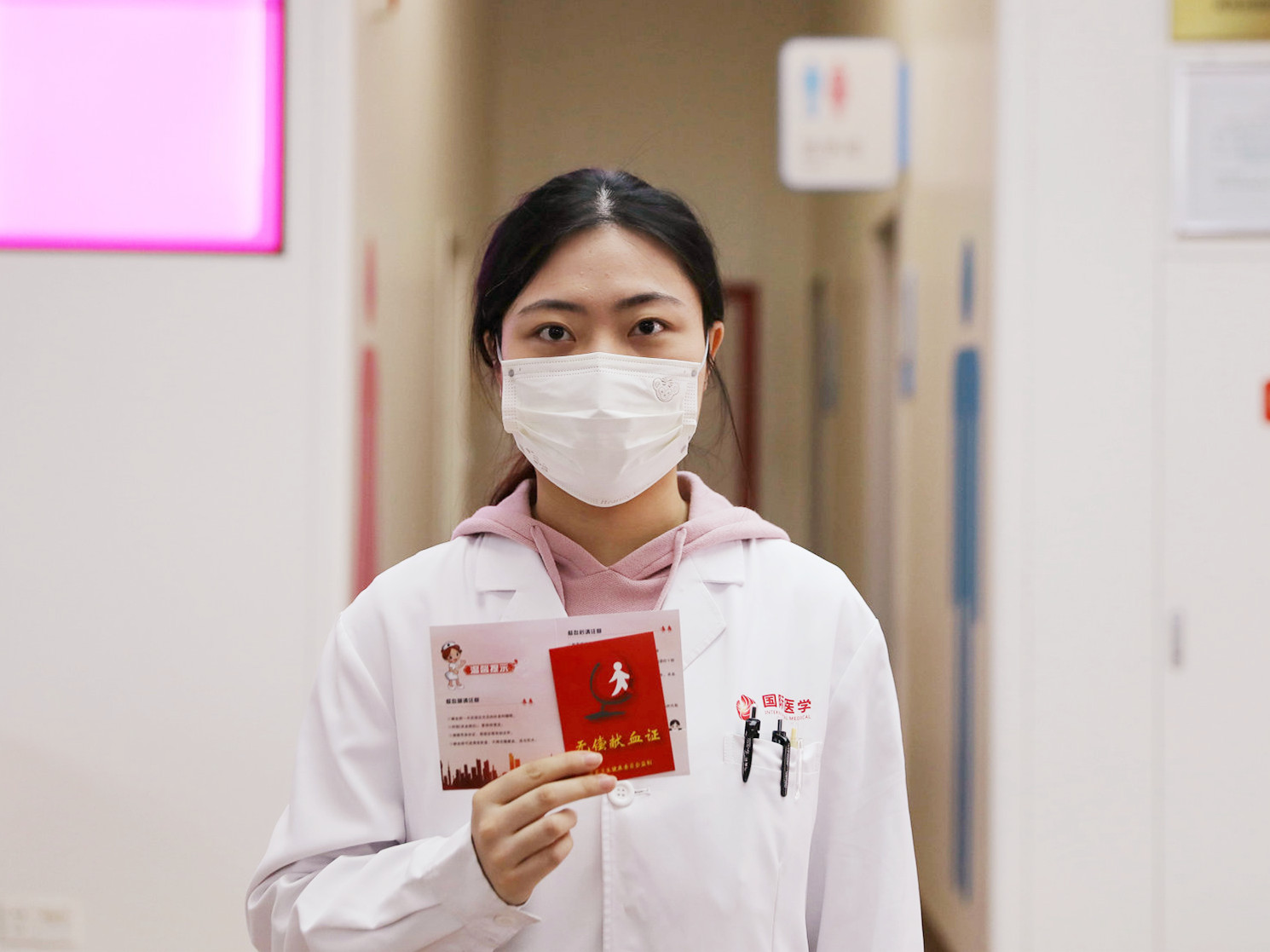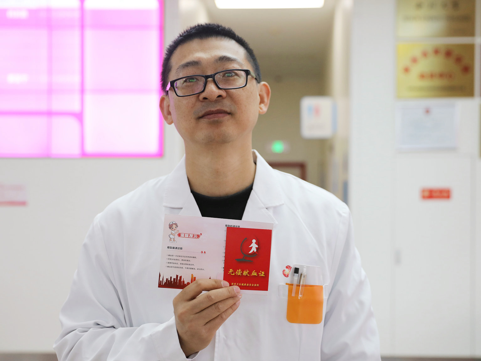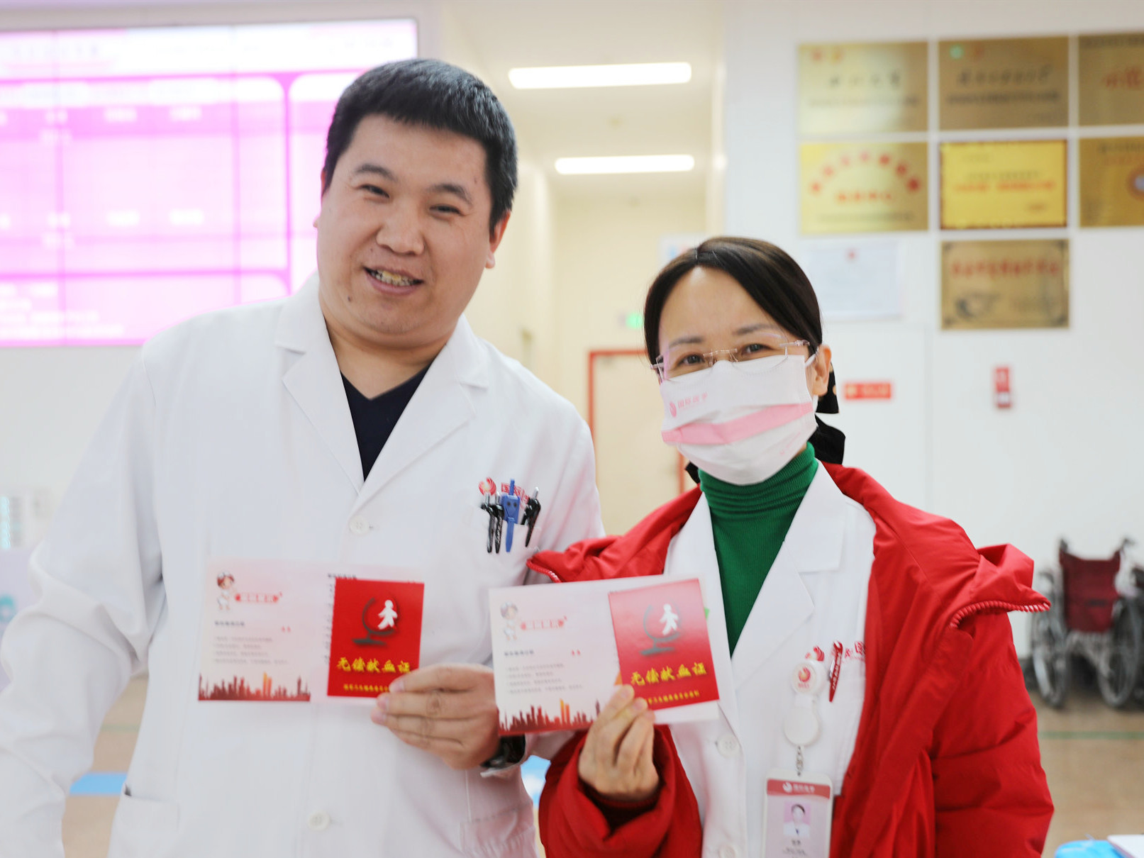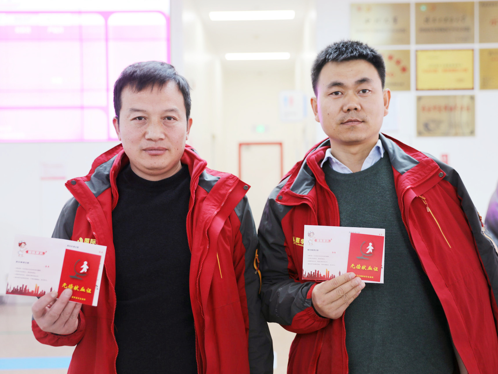 西安市中心血站現(xiàn)場為踴躍參與無償獻血活動的醫(yī)務人員、志愿群眾發(fā)放無償獻血證,感謝他們?yōu)橥炀壬龀龅呢暙I,呼吁更多人加入無償獻血者隊伍。