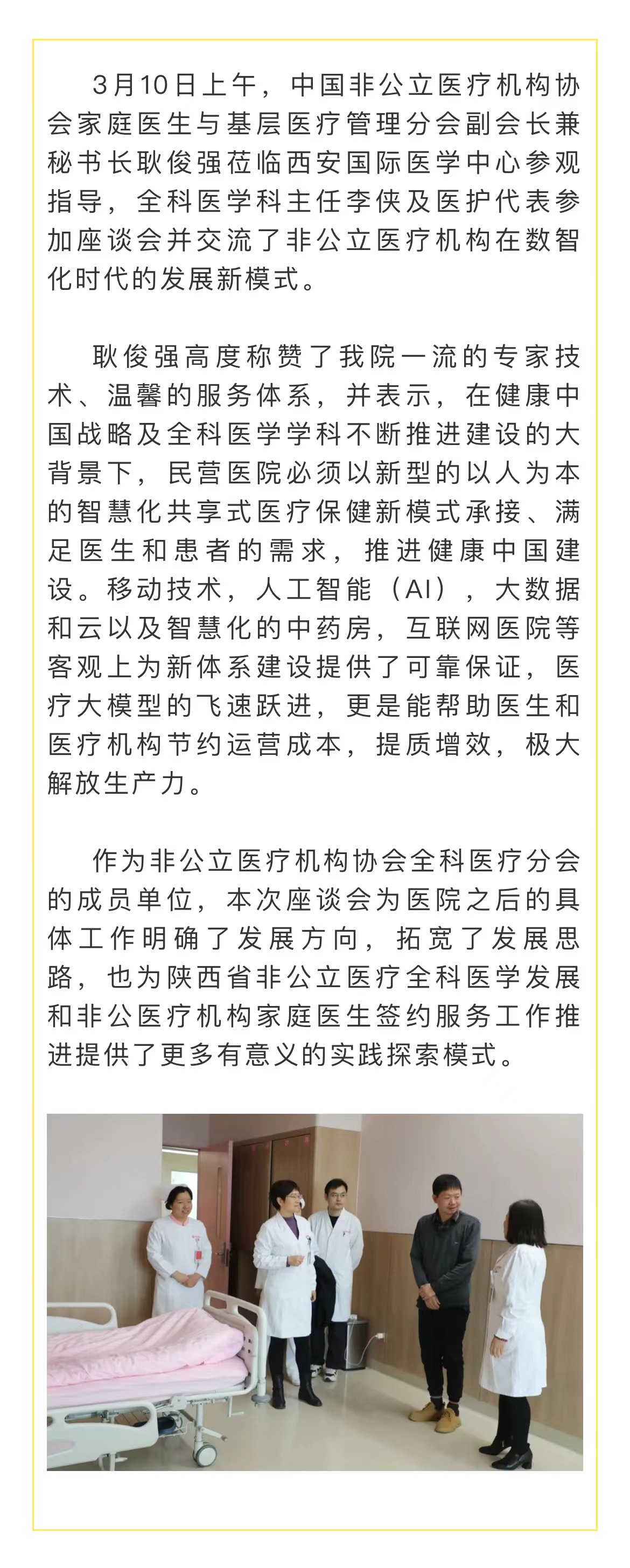 • 國內(nèi)首家高分通過JCI認(rèn)證的醫(yī)院 西安國際醫(yī)學(xué)中心醫(yī)院為國內(nèi)首家高分通過JCI認(rèn)證的醫(yī)院,該稱號(hào)由國際醫(yī)療機(jī)構(gòu)認(rèn)證聯(lián)合委員會(huì)頒布。
