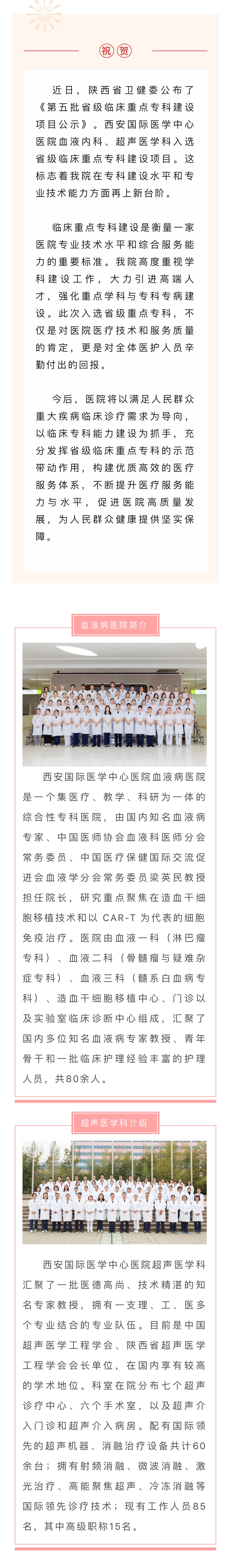 我院血液內(nèi)科、超聲醫(yī)學(xué)科入選省級(jí)臨床重點(diǎn)專科建設(shè)項(xiàng)目