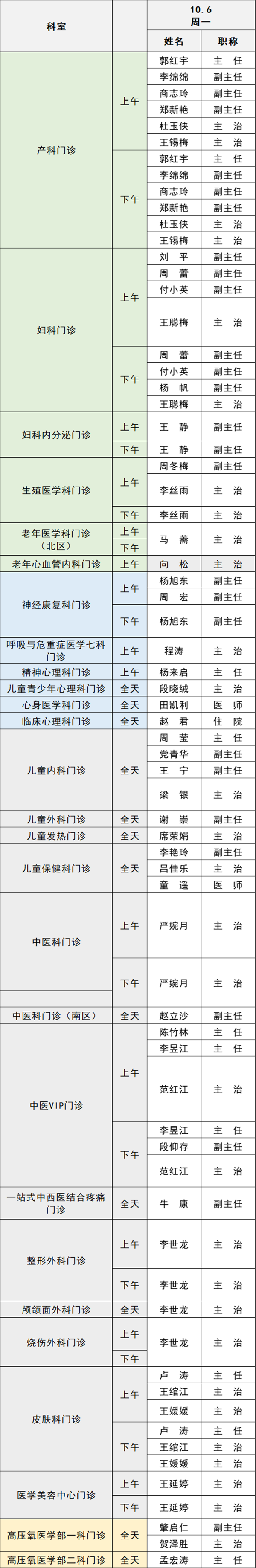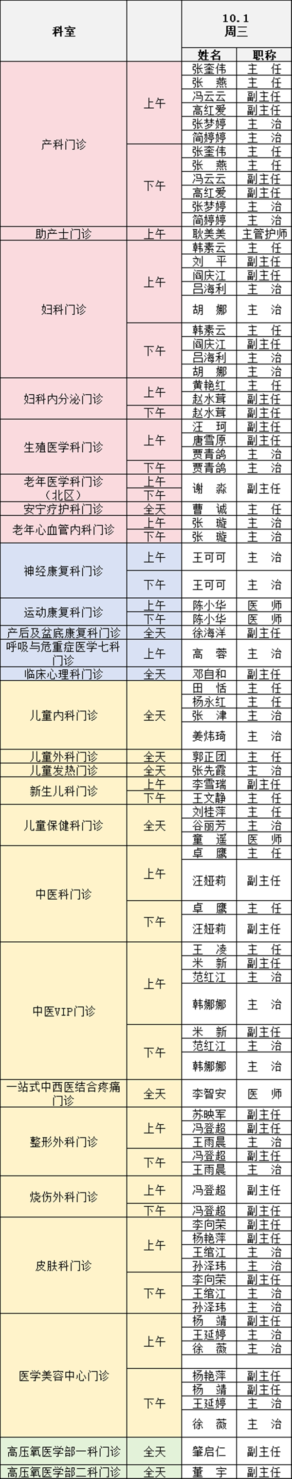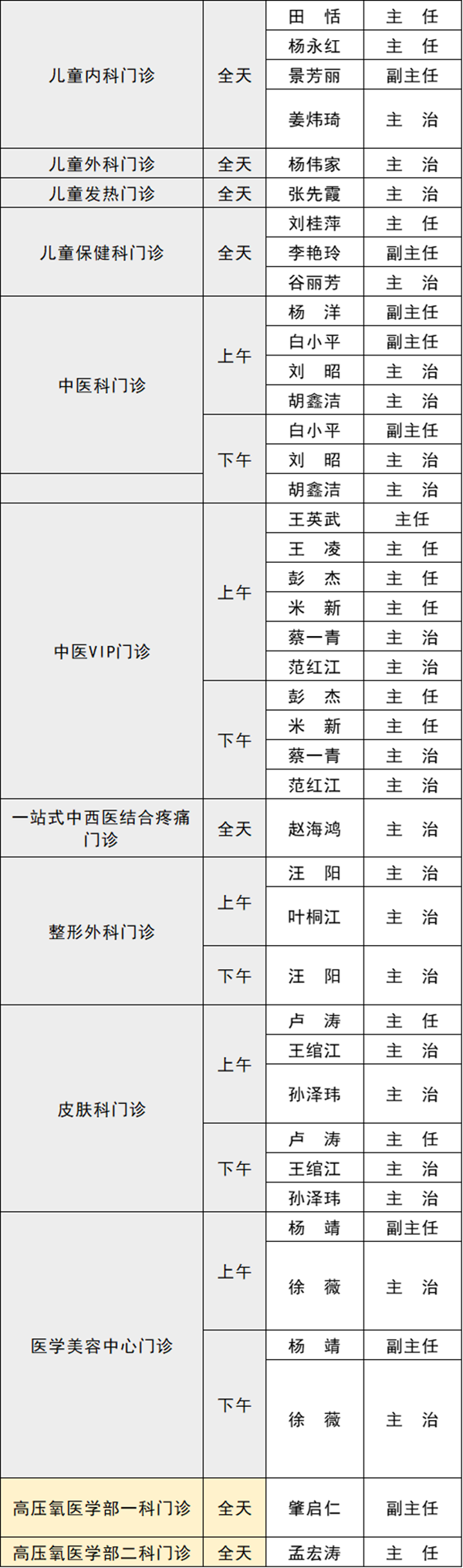 備注:實際出診情況以醫(yī)院掛號平臺實時信息為準(zhǔn)。“職稱”欄里主任=主任醫(yī)師副主任=副主任醫(yī)師主治=主治醫(yī)師