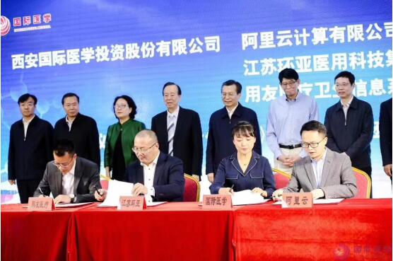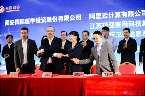 王永康書記等領(lǐng)導(dǎo)和嘉賓們首先參加了西安國際醫(yī)學(xué)中心的項(xiàng)目封頂儀式。在打造“ 一帶一路”國際醫(yī)療中心的啟動儀式上,國際醫(yī)學(xué)董事長史今代表公司與西安電子科技大學(xué)校長楊宗凱、英國國王學(xué)院代表簽訂《共建國際醫(yī)學(xué)院合作框架協(xié)議》;與阿里云簽訂《落地實(shí)施協(xié)議》、與江蘇環(huán)亞簽訂《信息化合作協(xié)議》、與用友醫(yī)療簽訂《信息化集團(tuán)管控項(xiàng)目實(shí)施協(xié)議》。