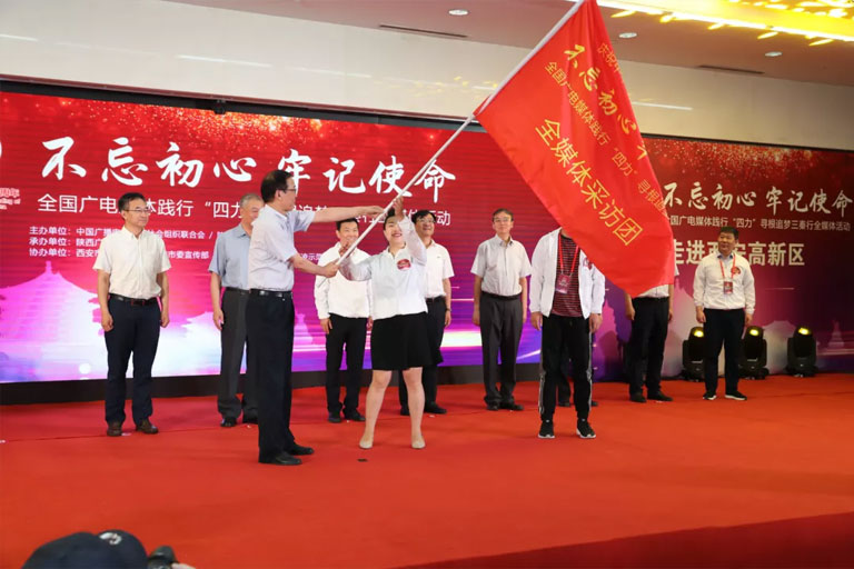 不忘初心 牢記使命——慶祝新中國成立七十周年全國廣電媒體踐行‘四力’尋根追夢三秦行”全媒體活動由中國廣播電影電視社會組織聯(lián)合會、陜西省委宣傳部聯(lián)合主辦并于當日上午在西安正式啟動。